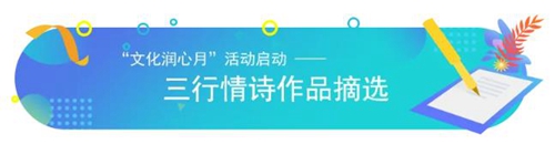 城發(fā)之輝煌,我們之榮光。本期“文化潤(rùn)心月”活動(dòng),展示優(yōu)秀三行情詩(shī)作品。下面,讓我們一起通過(guò)三行情詩(shī)感受廣大員工身為集團(tuán)一份子的自豪感、使命感,體悟他們濃厚的愛(ài)企之情。