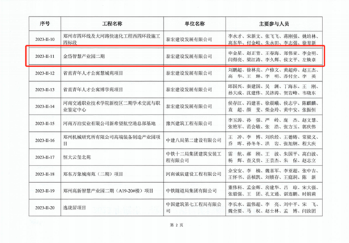 近日,河南省建筑業(yè)協(xié)會(huì )發(fā)布《關(guān)于公布2023年度第二批河南省優(yōu)質(zhì)結構工程名單的通知》(豫建協(xié)〔2023〕159號),城發(fā)·金岱智慧產(chǎn)業(yè)園二期和龍湖金融中心外環(huán)7號樓兩項工程順利通過(guò)專(zhuān)家組考評,榮獲“2023年度河南省優(yōu)質(zhì)結構工程”獎。