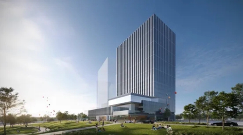 城發(fā)中心以“嵩山書(shū)頁(yè)巖”為設計理念,以中空LOW-E玻璃打造極簡(jiǎn)幕墻立面,玻璃寬約3米,隱藏式開(kāi)啟窗。