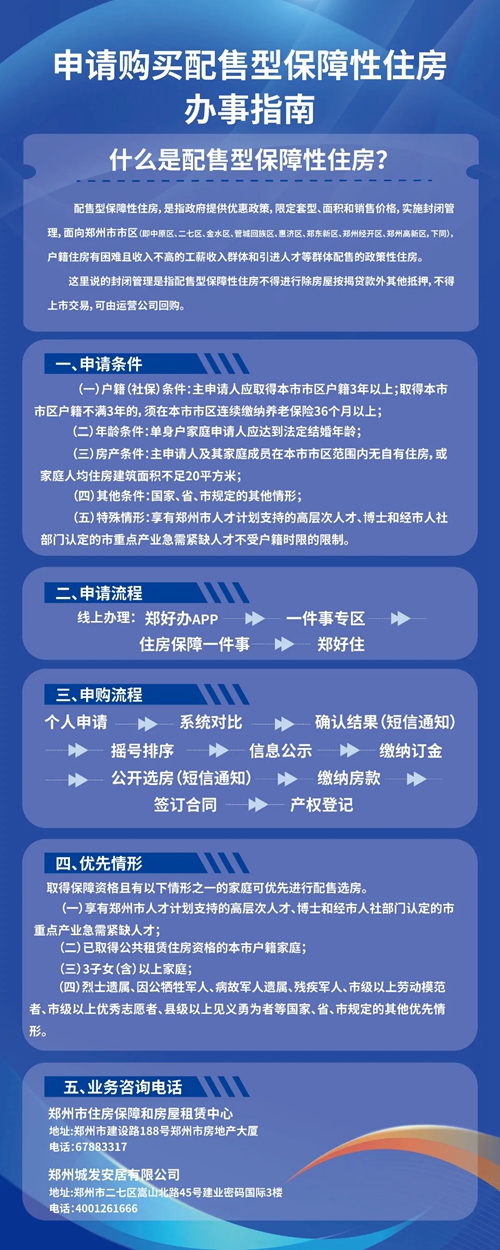 如在申請過程中有任何疑問,可以撥打鄭州市住房保障和房屋租賃中心咨詢電話:0371-67883316、0371-67883317;鄭州市城發(fā)安居有限公司咨詢電話:4001261666。咨詢時(shí)間為配售項(xiàng)目申請期間:8:30至20:00,其他時(shí)間(工作日):8:30至18:00。