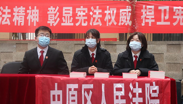 此次宣傳以“尊崇憲法 學(xué)習憲法 遵守憲法 維護憲法 運用憲法”為主題,通過(guò)懸掛條幅、擺放展架、發(fā)放宣傳冊、法律讀本、現場(chǎng)說(shuō)法等方式,重點(diǎn)宣傳習近平總書(shū)記全面依法治國新理念新思想新戰略,黨的十九屆五中全會(huì )精神,新中國憲法發(fā)展歷程、憲法的地位和作用,憲法的基本原則和主要條款以及民法典、掃黑除惡、防詐騙、防范非法集資等相關(guān)內容。