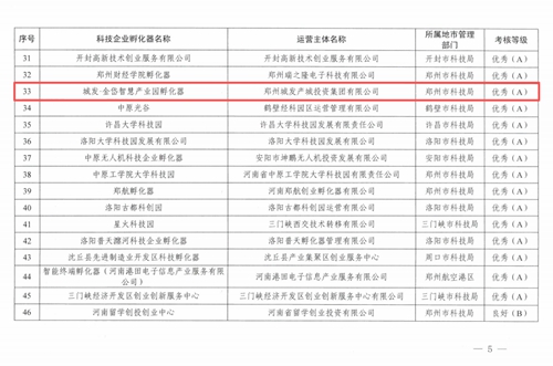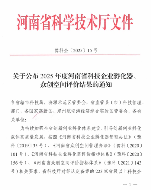 近日,河南省科學技術(shù)廳正式發(fā)布《關(guān)于公布2025年度河南省科技企業(yè)孵化器眾創(chuàng)空間評價結(jié)果的通知》(豫科企〔2025〕15號),鄭州城發(fā)集團金岱智慧產(chǎn)業(yè)園憑借扎實的孵化服務(wù)能力、突出的創(chuàng)新培育成效,在全省223家省級以上科技企業(yè)孵化器的嚴格考評中脫穎而出,榮獲最高考核等級——“優(yōu)秀(A類)”!